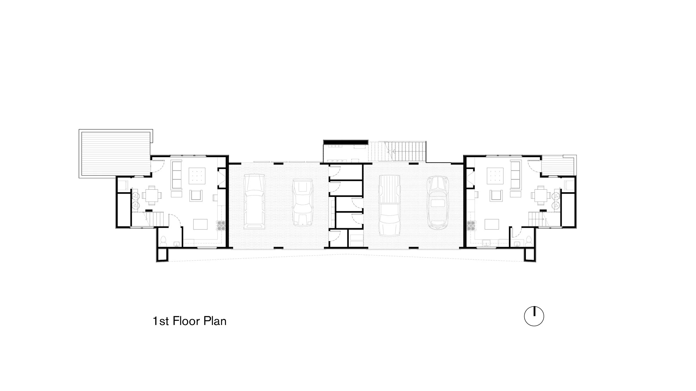 MFD-01 is a residential infill project. The design intent is to have a monolithic presence on the street with open public areas for its residents towards the back and sides of the building. It is made up of four 2 bedroom units. Each unit consists of two levels, living and kitchen on one level and bedrooms on the other. Every unit is treated as a unique volume, all volumes connect and stack to accommodate for parking on the ground level